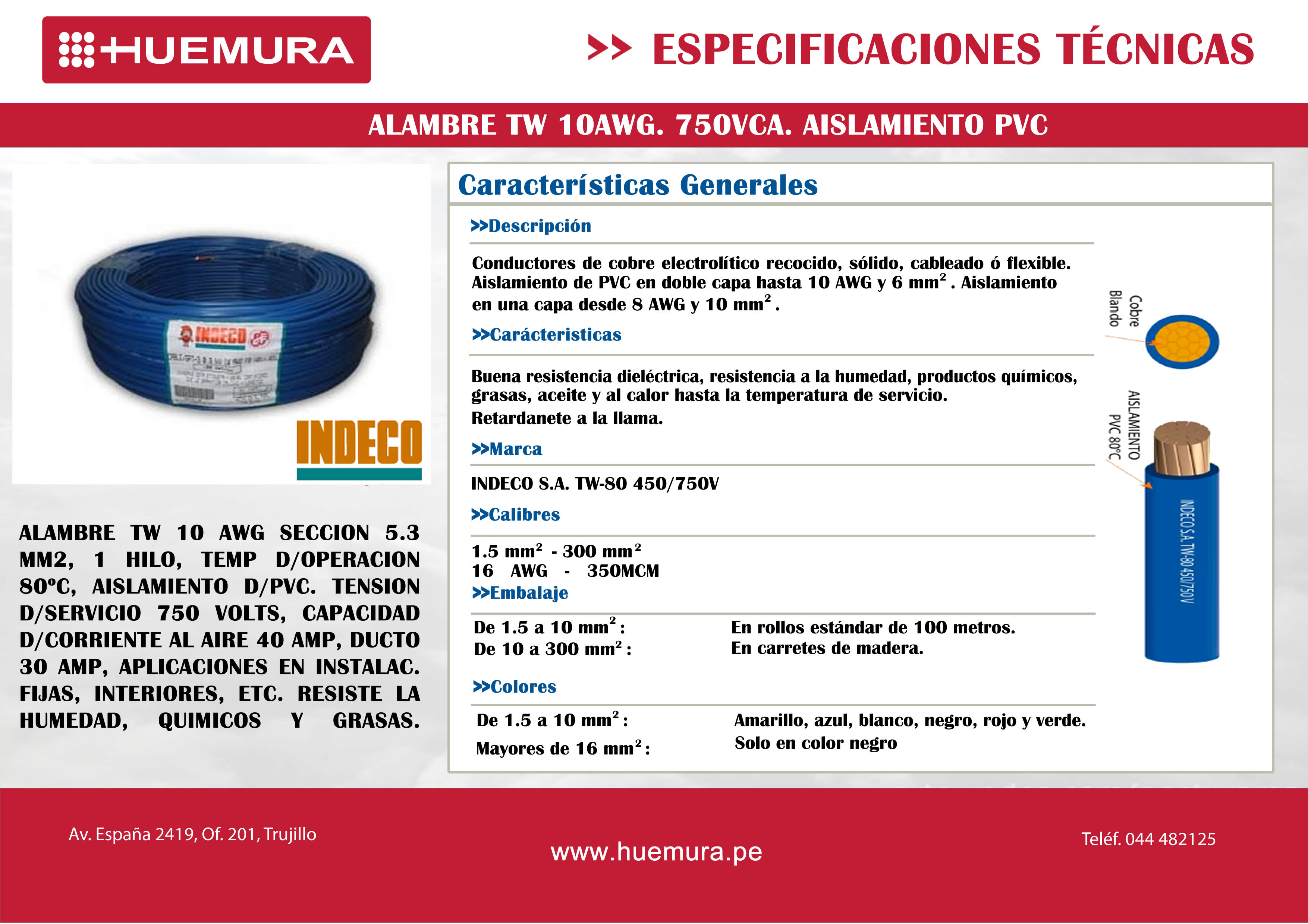 ALAMBRE TW 10 AWG SECCION 5.3 MM2, 1 HILO,