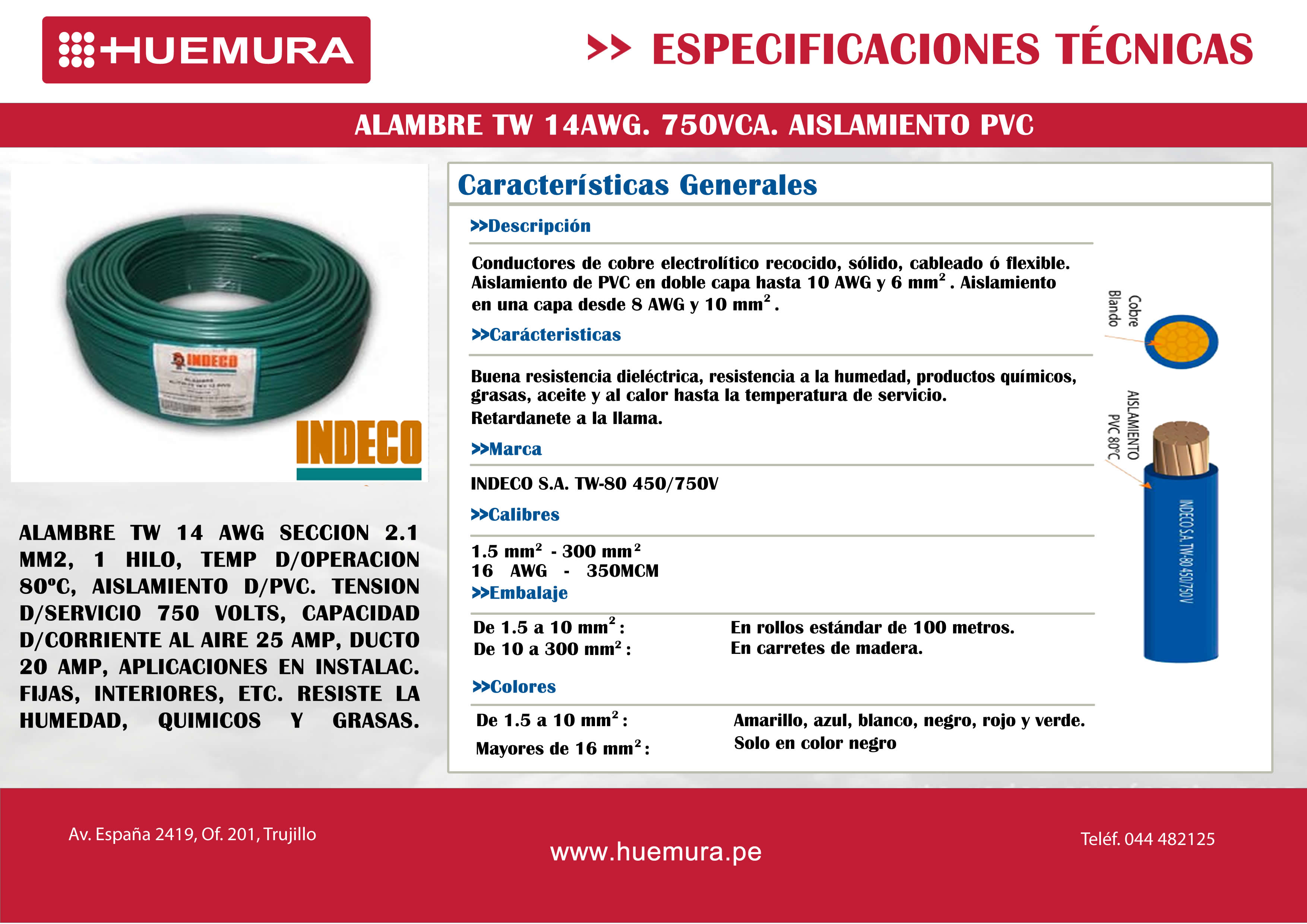 ALAMBRE TW 14 AWG SECCION 2.1 MM2, 1 HILO