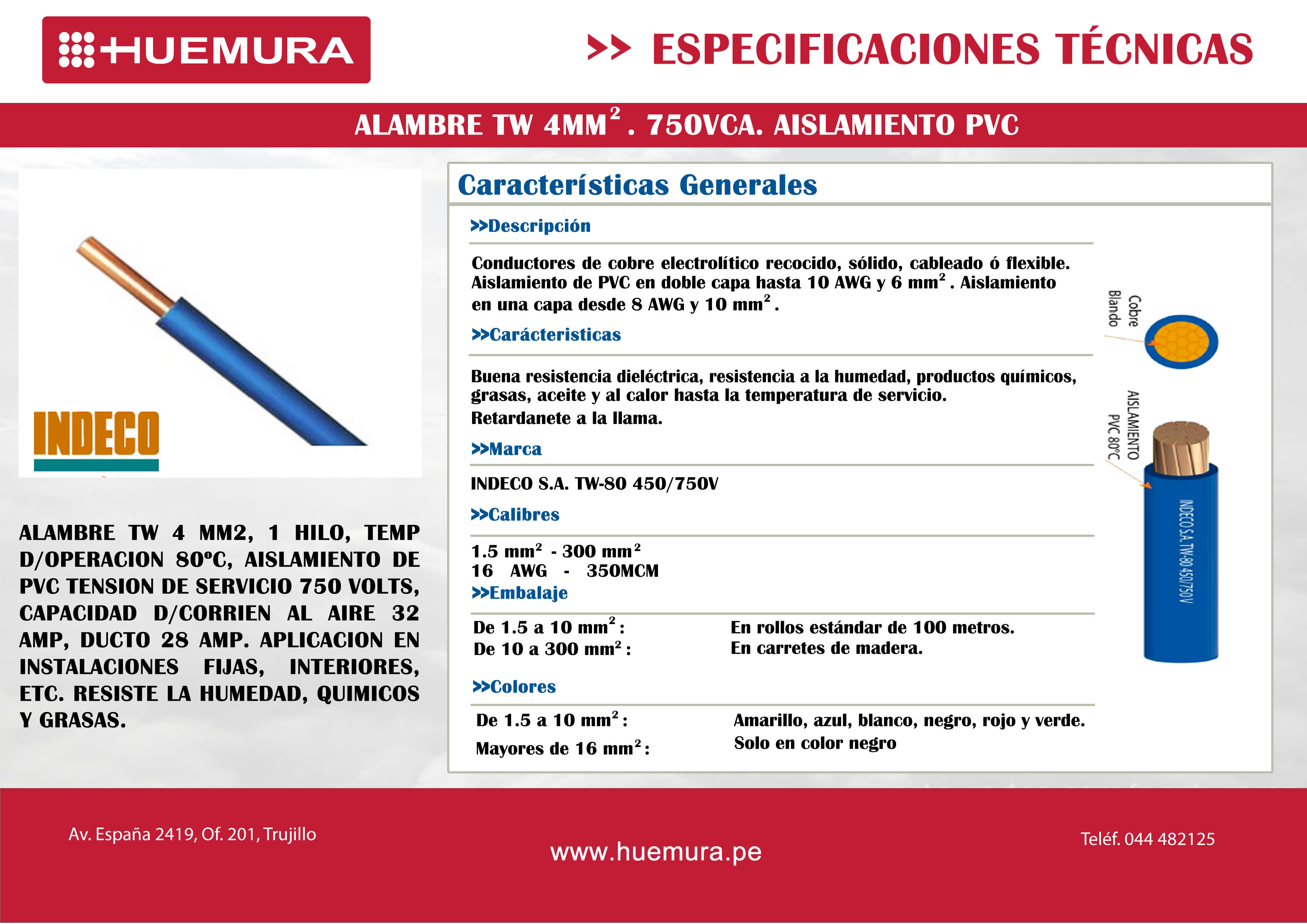 ALAMBRE TW 4 MM2, 1 HILO, TEMP D/OPERACION 80ºC