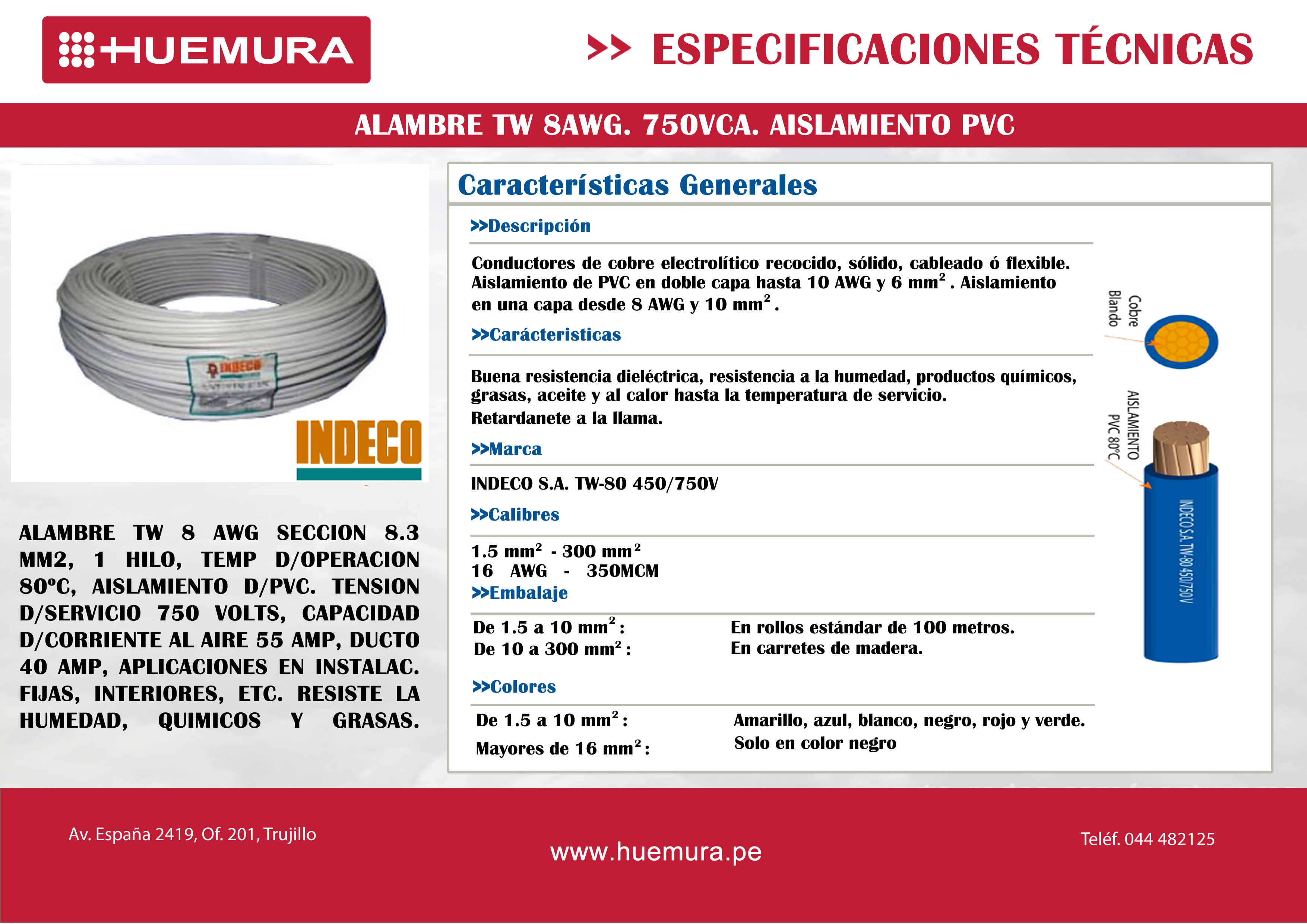ALAMBRE TW 8 AWG SECCION 8.3 MM2, 1 HILO,